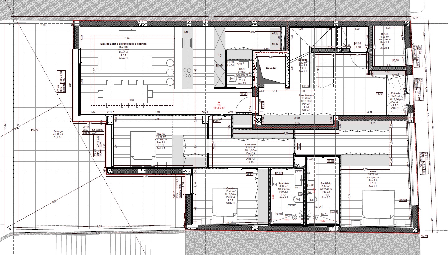 Projeto de construção de um edifício multifamiliar e serviços. Esmero na execução e acabamentos de luxo conferem outra distinção ao empreendimento, relativamente ao imobiliário atual.